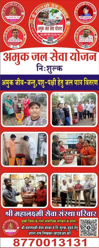 3. अमुक जल सेवा योजना – पशु-पक्षियों हेतु जल पात्र व दाना सेवा।