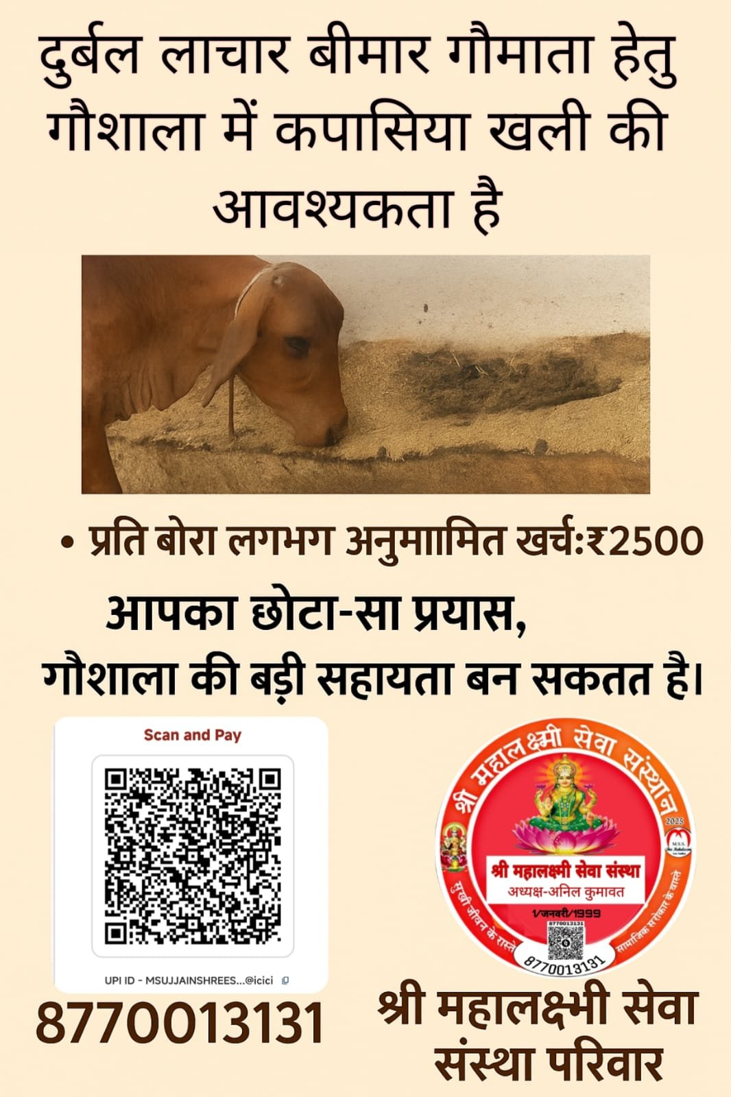 > “सेवा करने का अवसर, परम सौभाग्य होता है।” आइए मिलकर संकल्प लें कि हम समाज में गौ सेवा, मानव सेवा और सामाजिक सरोकारों को नई दिशा देंगे।